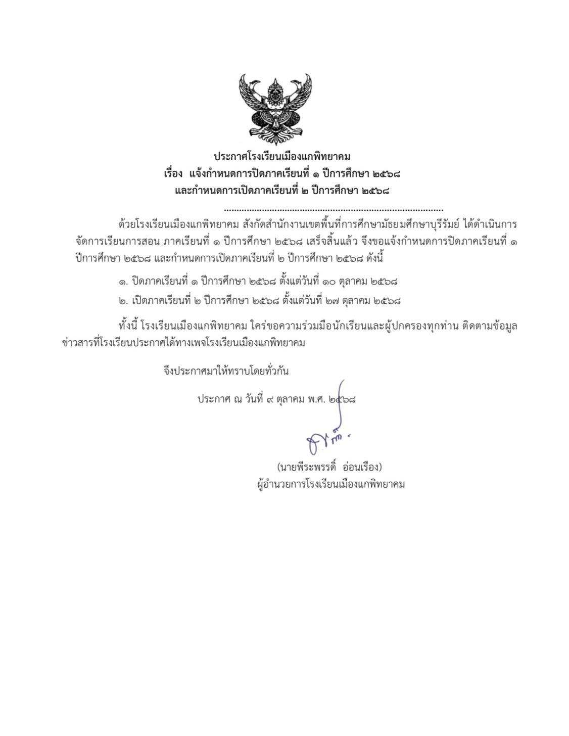 กำหนดการปิด – เปิดภาคเรียนที่ 2 ปีการศึกษา 2568